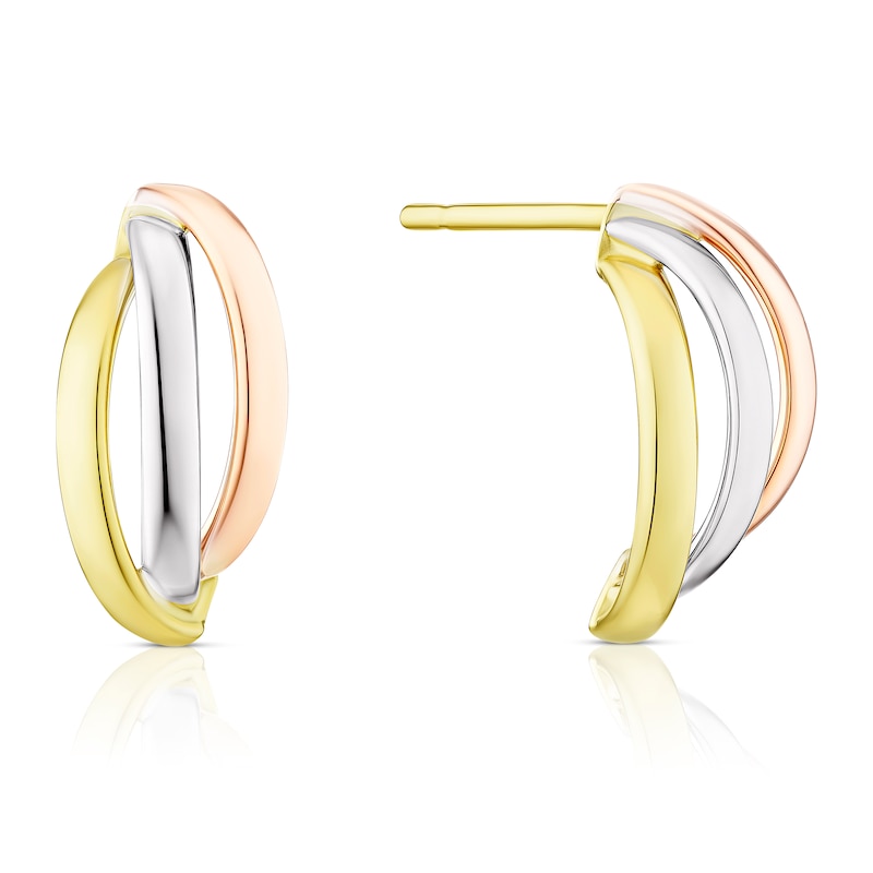 9ct Three Colour Gold Triple Row Small Hoop Earrings | H.Samuel