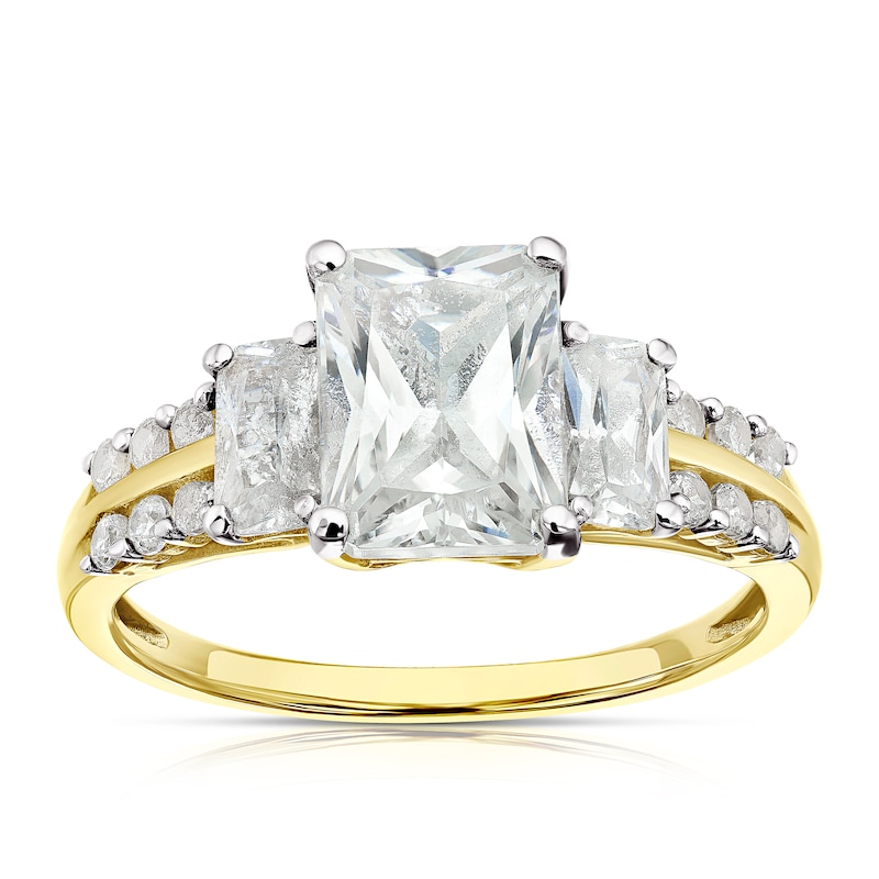 9ct Yellow Gold Three Stone Cubic Zirconia & Shoulder Set Ring | H.Samuel
