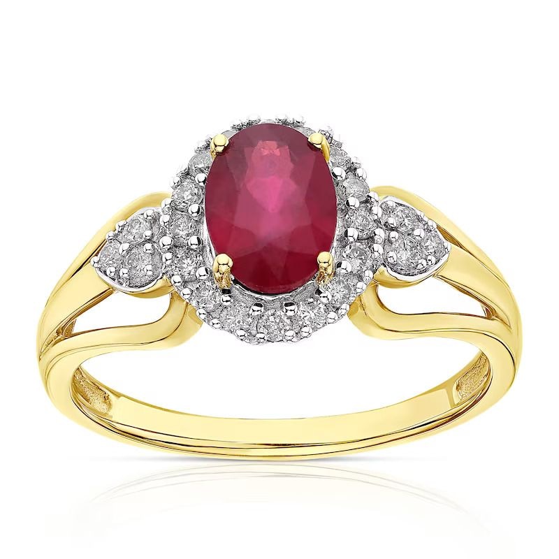 9ct Yellow Gold Treated Ruby & 0.20ct Diamond Ring | H.Samuel