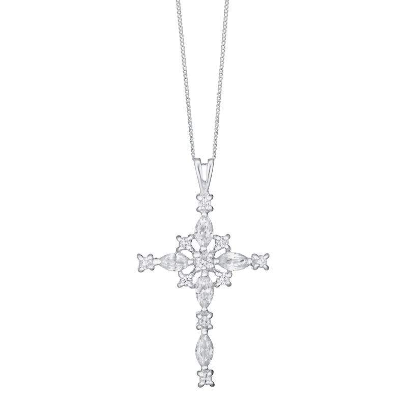 Sterling Silver & Cubic Zirconia Fancy Cross Pendant | H.Samuel